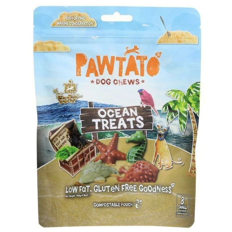 Packed in biodegradable bags, these fun sea-animal shaped dog chews are delicious as well as environmentally friendly.