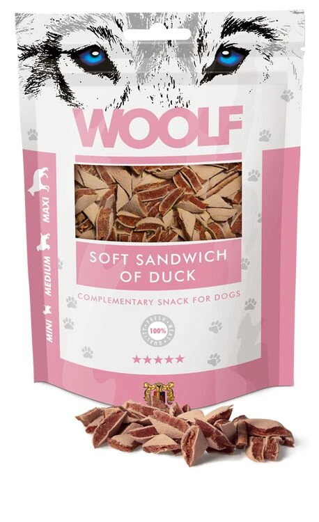 These Soft Sandwich of Duck are made of 100% protein sources to provide the highest quality and the best nutritional intake. The Woolf snack, once cooked, is packed without any chemical additives, preservatives or colourings. To ensure the conservation, an oxygen absorber is placed within the bag.